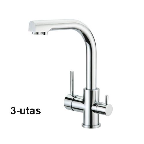 Dekoratív, háromutas (speciálisan a lágy RO vízhez + hideg és meleg csapvízhez tervezett), kerámiabetétes, konyhai csaptelep víztisztítóhoz. Alkalmazásával nem kell külön lyukat fúrni a pulton a RO (Fordított ozmózis elvén működő) háztartási víztisztító tisztavíz csaptelepének. A meglévő konyhai csaptelep helyére kell felszerelni.